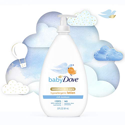 - Rich moisture: Baby Dove Rich Moisture Hypoallergenic Body Lotion (20 oz.) gently nourishes and hydrates baby’s sensitive skin after bath time, leaving it moisturized for 24 hours