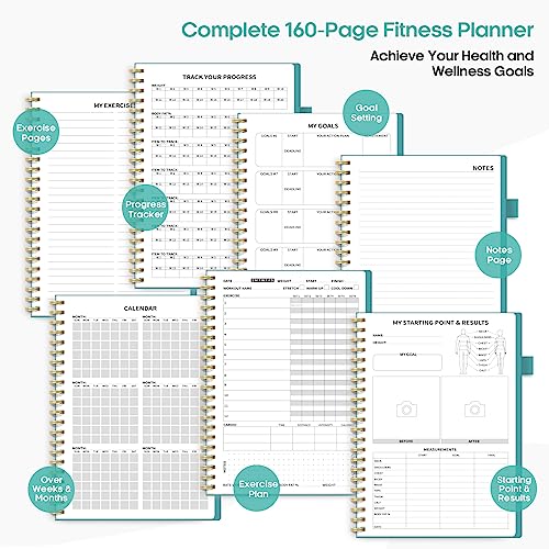 Fitness Workout Journal for Women & Men, A5(5.5″ x 8.2″) Workout Log Book Planner for Tracking, Progress, and Achieving Your Wellness Goals-Blue