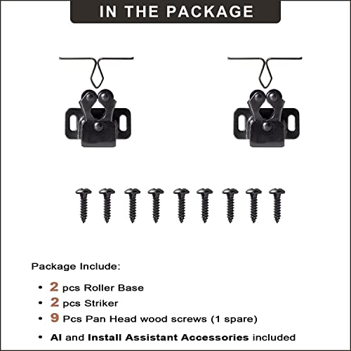 - 【2 pcs Pack】 2 whole set in package, parts include 2 pcs roller bases, 2 pcs strikers, all screws and install assistant parts, AI sheet