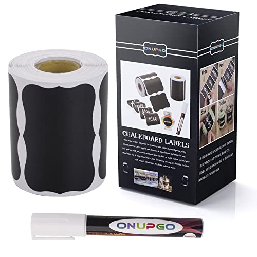 ONUPGO Chalkboard Labels-180pcs Waterproof Reusable Blackboard Stickers with 1 Liquid Chalk Marker for Mason Jars, Parties Decoration, Craft Rooms, Weddings, Storage, Organize Your Home & Kitchen