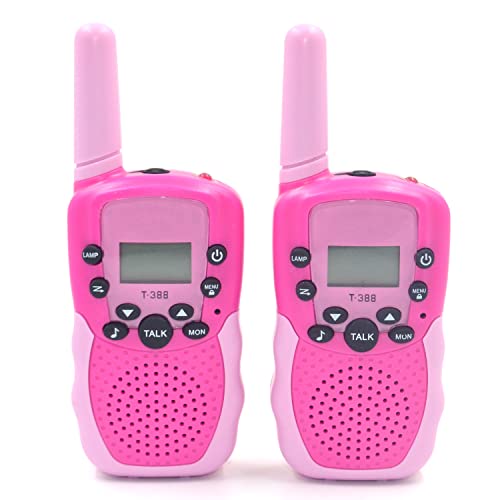 SUNET 2 Pack Battery Operated Walkie Talkies for Kids with 22 Channels 2 Way Radio 6 KMS Long Rang, Toy for 3-12 Year Old Boys Girls, with Backlit LCD Flashlight for Camping Outdoor (red-Pink)