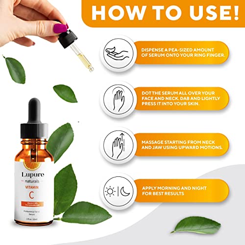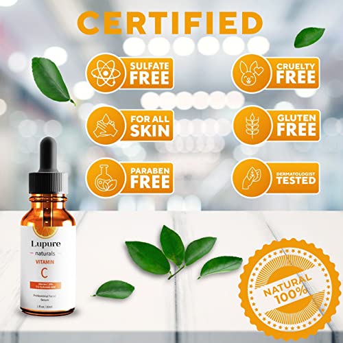 Vitamin C Face Serum with Hyaluronic Acid: Lupure Skin Brightening Serum with Vitamin C and E for Dark Spots – Anti Aging Facial Serum (1 Fl Oz/ 30ml)